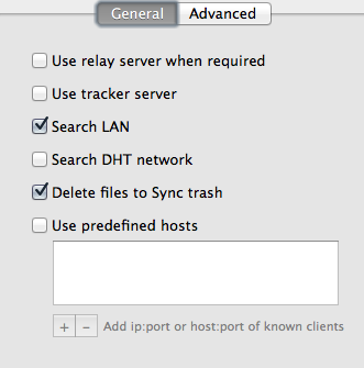 Еще пара слов для параноиков. Из btsync можно сделать полностью закрытую систему. Я не помню, как там по умолчанию, но если отключить все "Use ..." и "Search ..." опции и задать список ваших машинок в "Use predefined hosts" то BitTorrent Sync будет работать совершенно локально не отдавая ничего в злобный и опасный интернет. Но даже если этого всего не сделать, то ваши файлы все равно не окажутся на серверах btsync и, если верить тому что они утверждают, никакие данные из ваших файлов у них не хранятся. По моему мнению, лучше принять меры и со своей стороны если вас очень заботит неприкосновенность данных. Я именно так и поступил для всех персональных данных - отменил все опции выхода в сеть и вообще закрыл доступ btsync в большой мир. Скорее всего, эти меры черезмерны, но мне так спокойней.